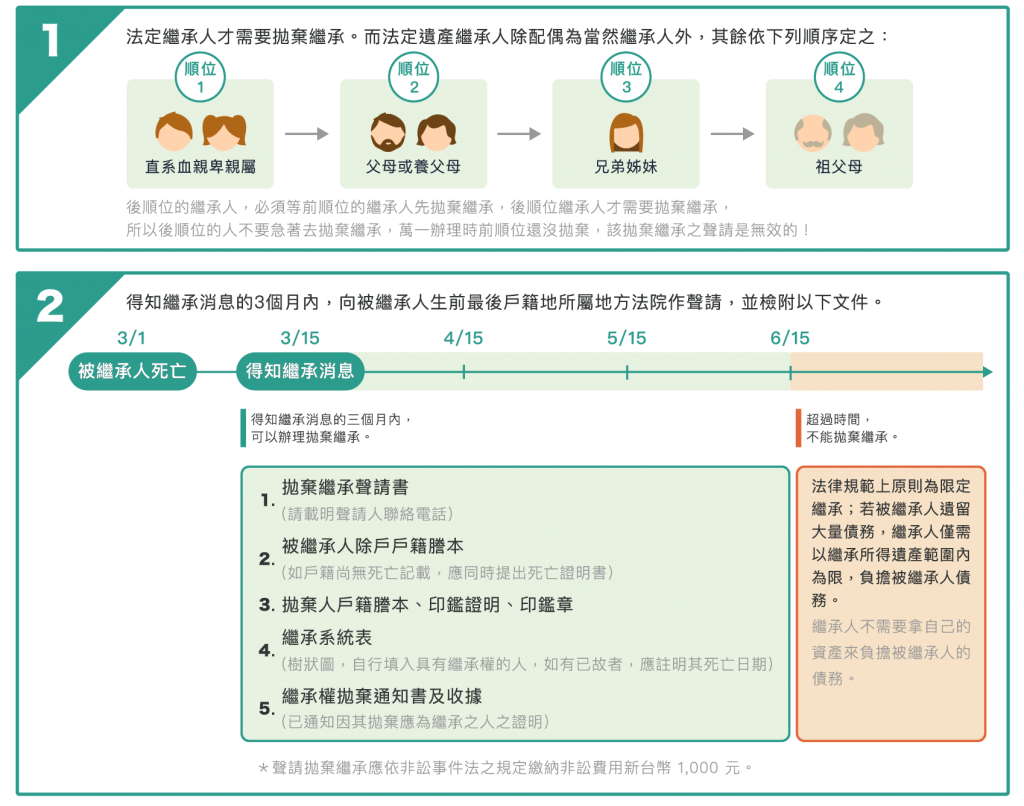 我們為大家整理好了懶人包,一張圖表讓你搞懂拋棄拋棄繼承順位、拋棄繼承流程,以及需要哪些文件!