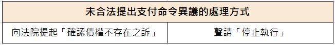 由上可知,雖然債務人未合法提出支付命令異議仍有其他處理方法,但不論花費的時間及費用都比支付命令異議高出不少,因此當收到支付命令時,一定要盡快在20日內提出異議,以免陷入不利的局面。